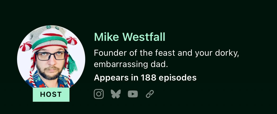 Mike: My 200th episode drops on Christmas Eve. It’s a surprise.