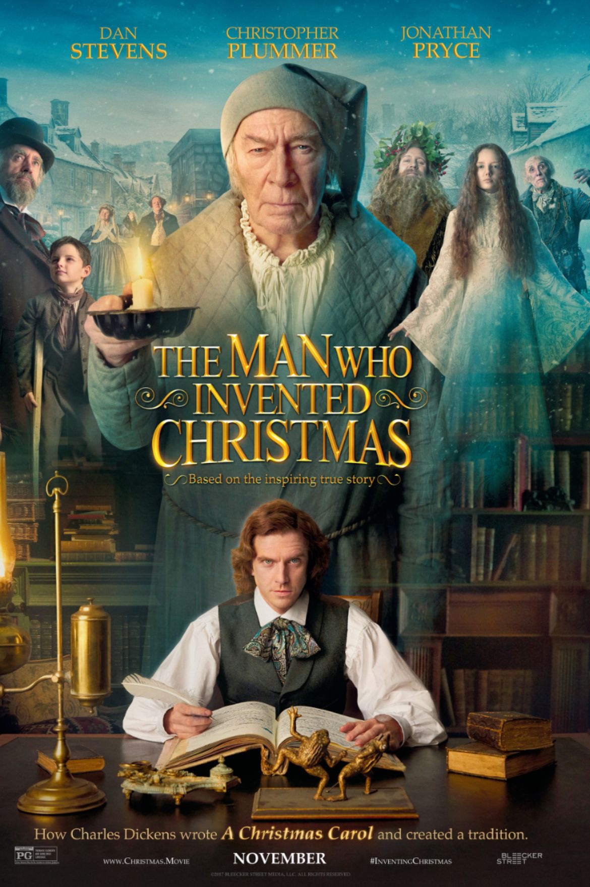 The story of how “A Christmas Carol” came to life proved irresistible to filmmakers. In 2017, director Bharat Nalluri brought Standiford’s book to the screen with “The Man Who Invented Christmas”, starring Dan Stevens as Dickens, Christopher Plummer as Scrooge, and Jonathan Pryce as Dickens’s father. The film blended biography with whimsy, dramatizing how Dickens’s real-life struggles and imagination fused into the tale that continues to define Christmas. Though modest at the box office, it earned praise for its charm, wit, and heart, and introduced a new audience to the story behind the story.